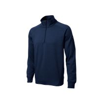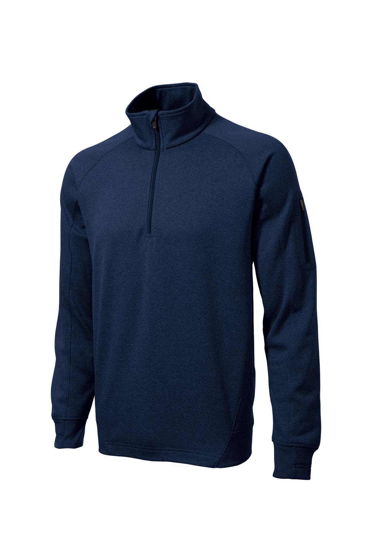 Cool, dry and colorfast, this moisture-wicking quarter-zip pullover has a snag-resistant face with a matte finish and brushed backing for comfort. It features double-knit construction, as well as a zippered pocket on the left sleeve and a chin guard.
